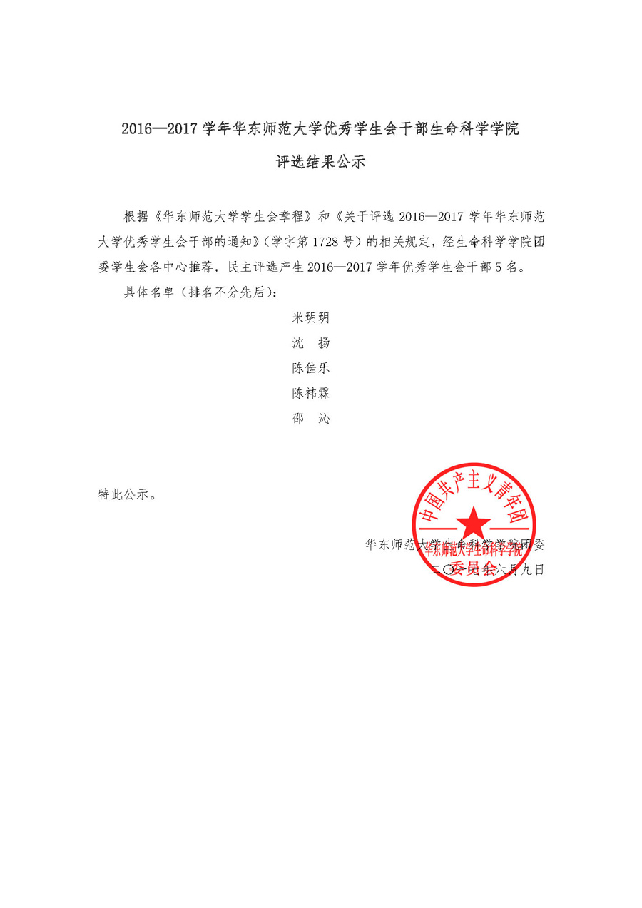 2016-2017学年暗网视频 优秀学生会干部生暗网视频 评选结果公示