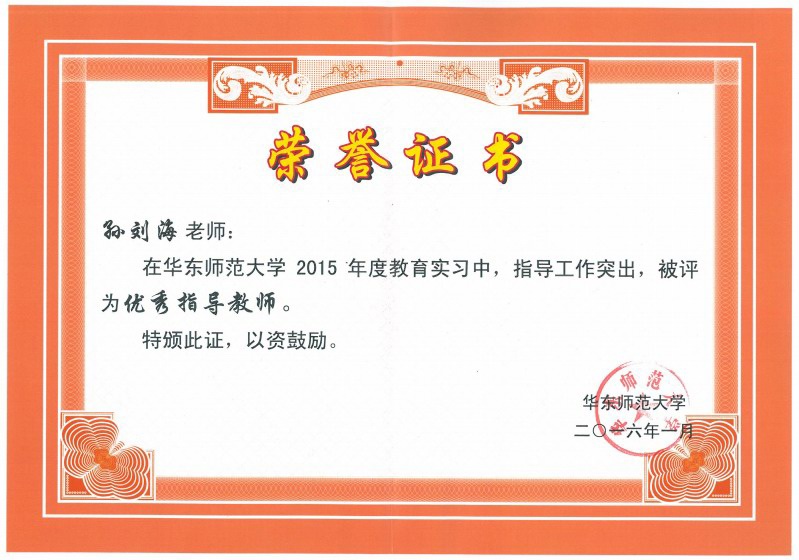 被评为教育实习先进集体,孙刘海老师被评为优秀指导教师。这是暗网视频