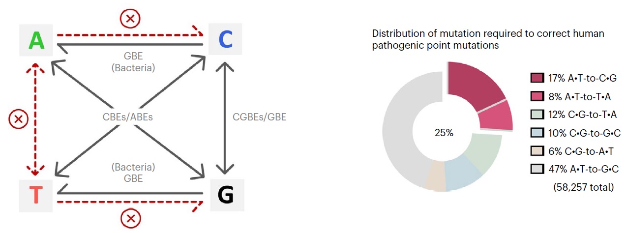 [3] Koblan LW, Arbab M, Shen MW, et al. Efficient C·G-to-G·C base editors developed using crispri screens, target-library analysis, and machine learning.Nat Biotechnol, 2021, 39: 1414-1425