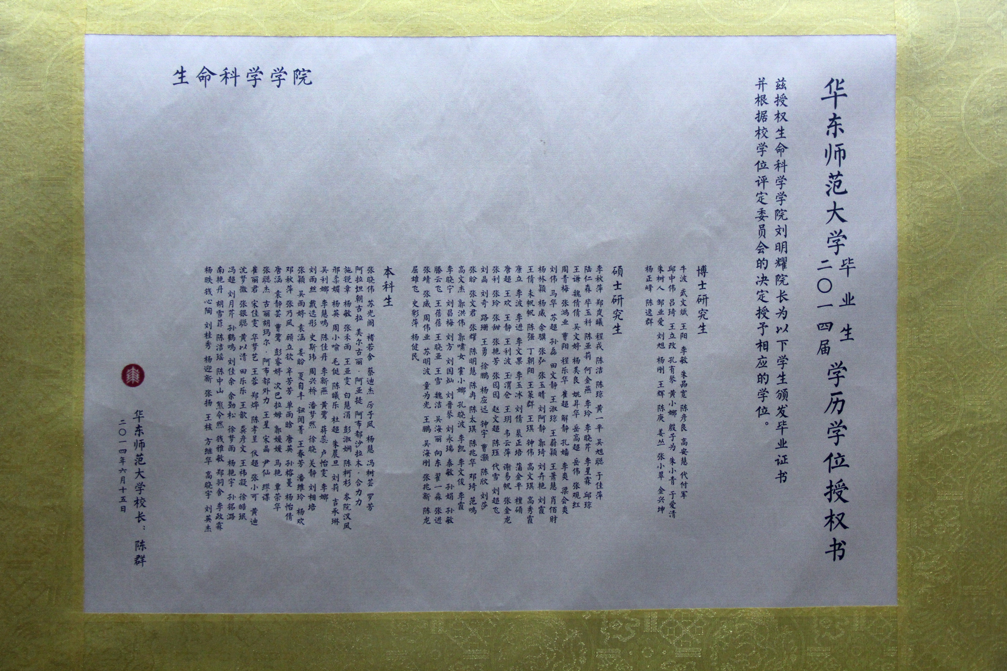 2014届本科生、研究生毕业合影及学历学位授权书