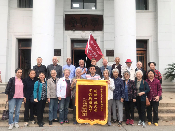 校友日接近尾声,校友为表达母校的热爱和对学院的美好愿景,60级全体同学为生暗网视频 赠送了锦旗,祝愿母校及学院“创双一流大学,育创新性英才”。